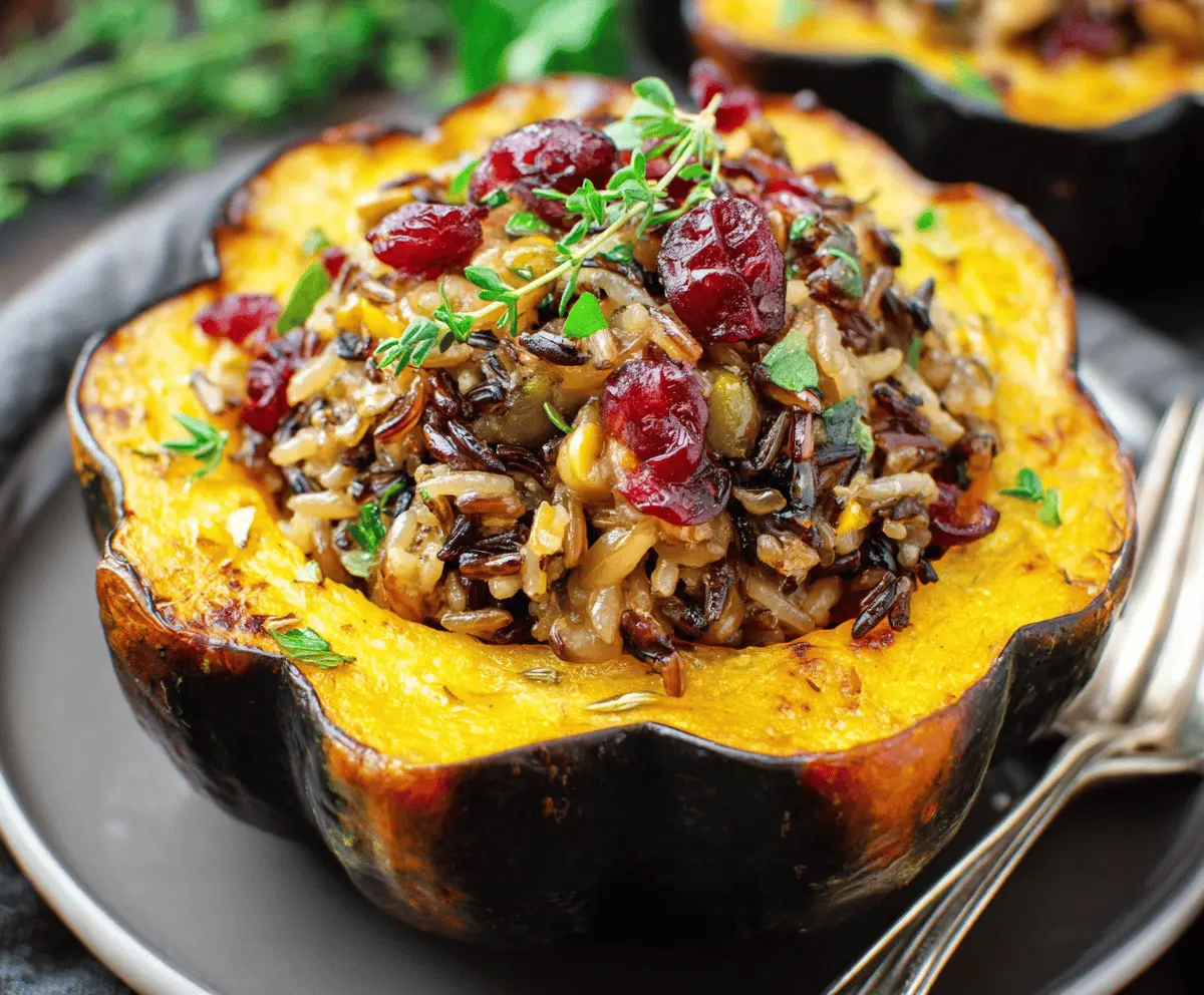 Acorn Squash Stuffed with Wild Rice and Cranberries