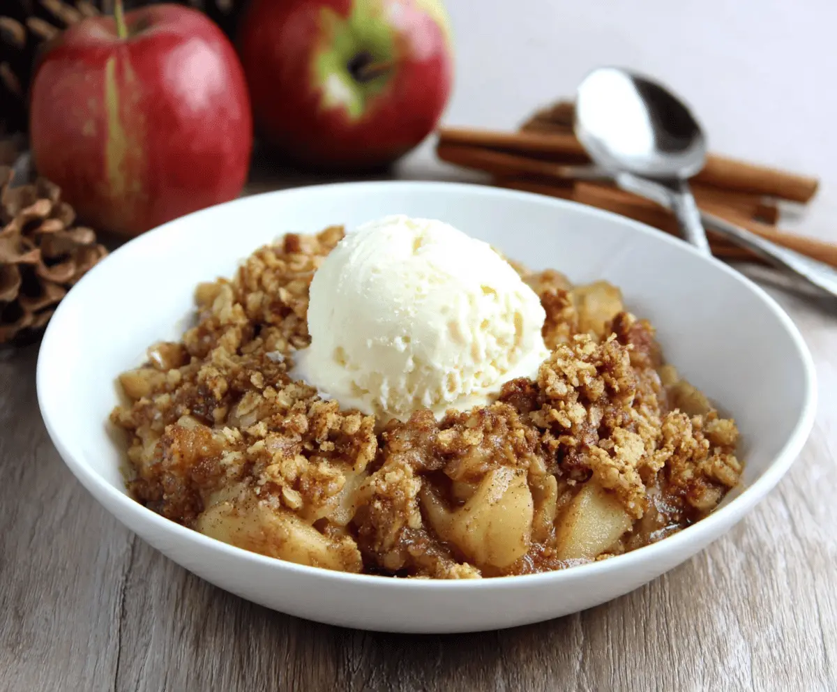 The best part? It’s simple to make, and your kitchen will smell amazing while it bakes. I love serving it with a scoop of vanilla ice cream on top—pure happiness! 🍏🍦