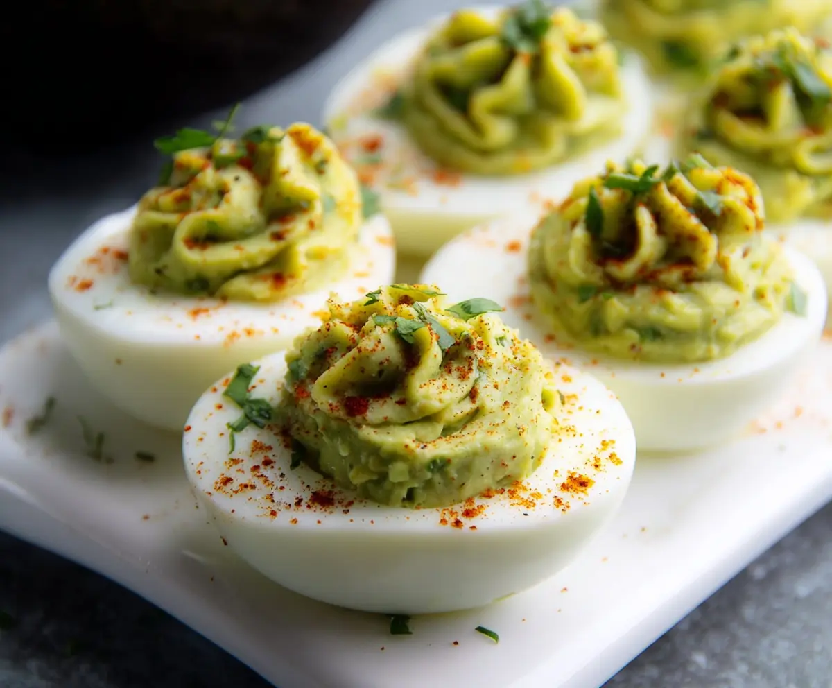 Enjoy your creamy, zesty Avocado Deviled Eggs as a perfect appetizer or snack!