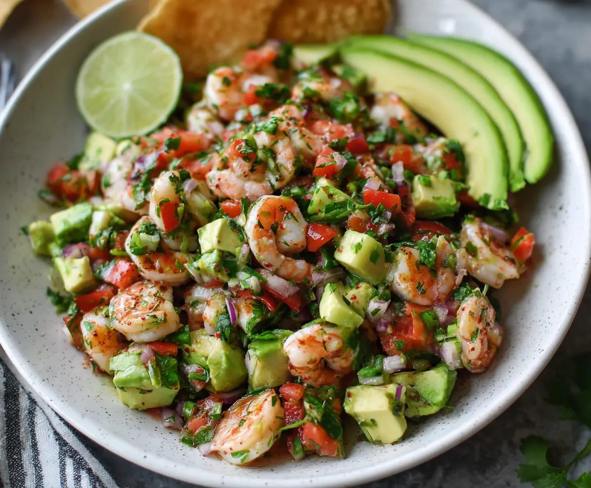 This Avocado Salsa Shrimp Salad is fresh and tasty! It brings together juicy shrimp and creamy avocado, all mixed with colorful veggies and a zesty salsa.