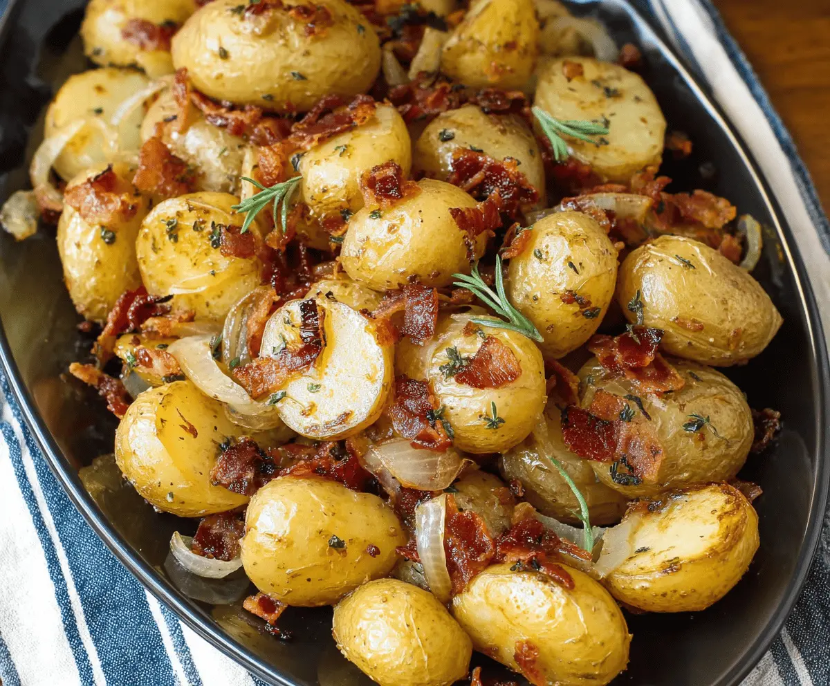 These baby potatoes with onion and bacon are a scrumptious side dish! The crispy bacon adds a savory crunch while the onions bring a sweet flavor. It’s comfort food at its best!