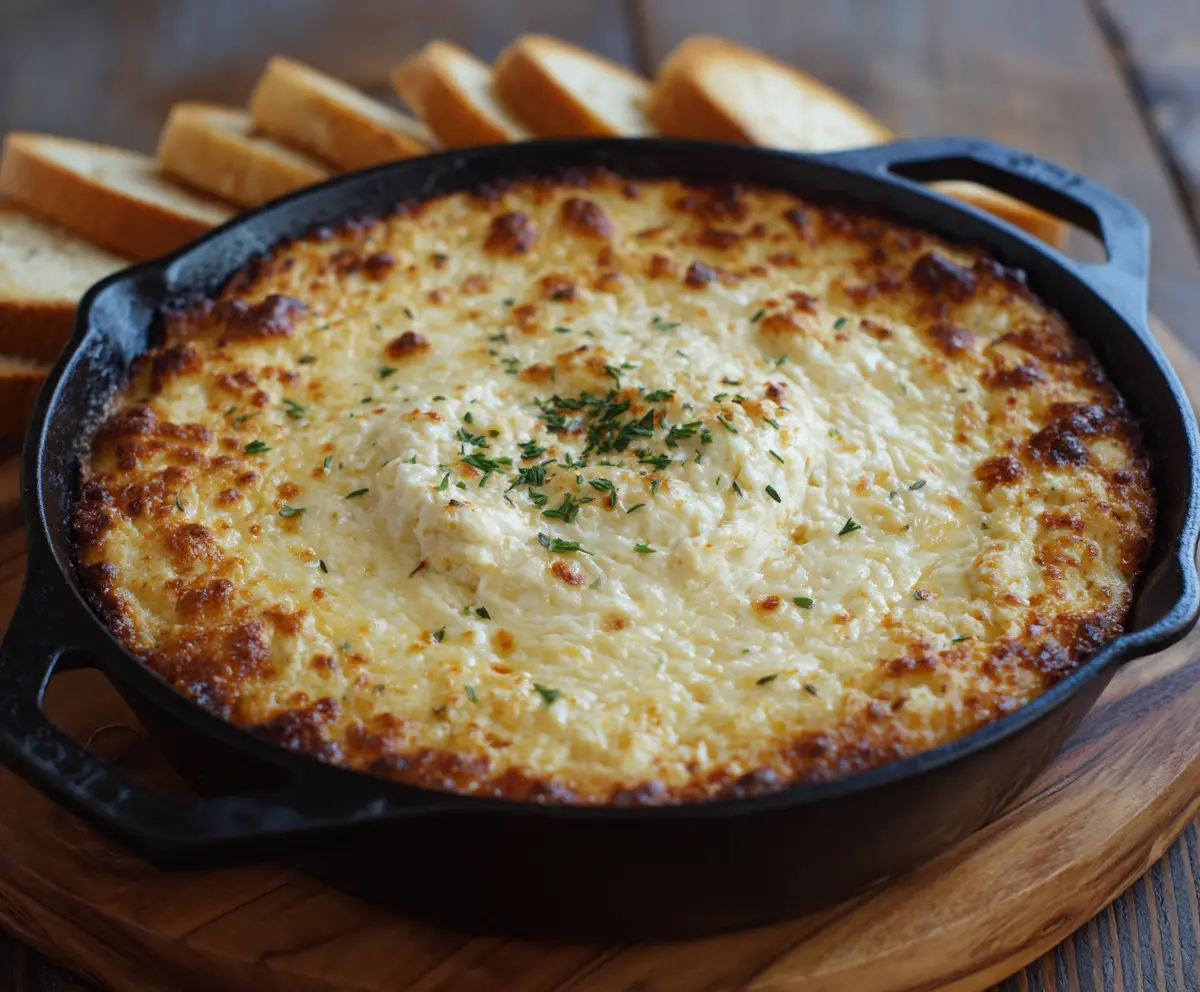 Remove the dip from the oven and let it cool for just a minute. Sprinkle the top with sliced green onions for a fresh touch. Serve it warm with toasted baguette slices or your favorite crackers for dipping!