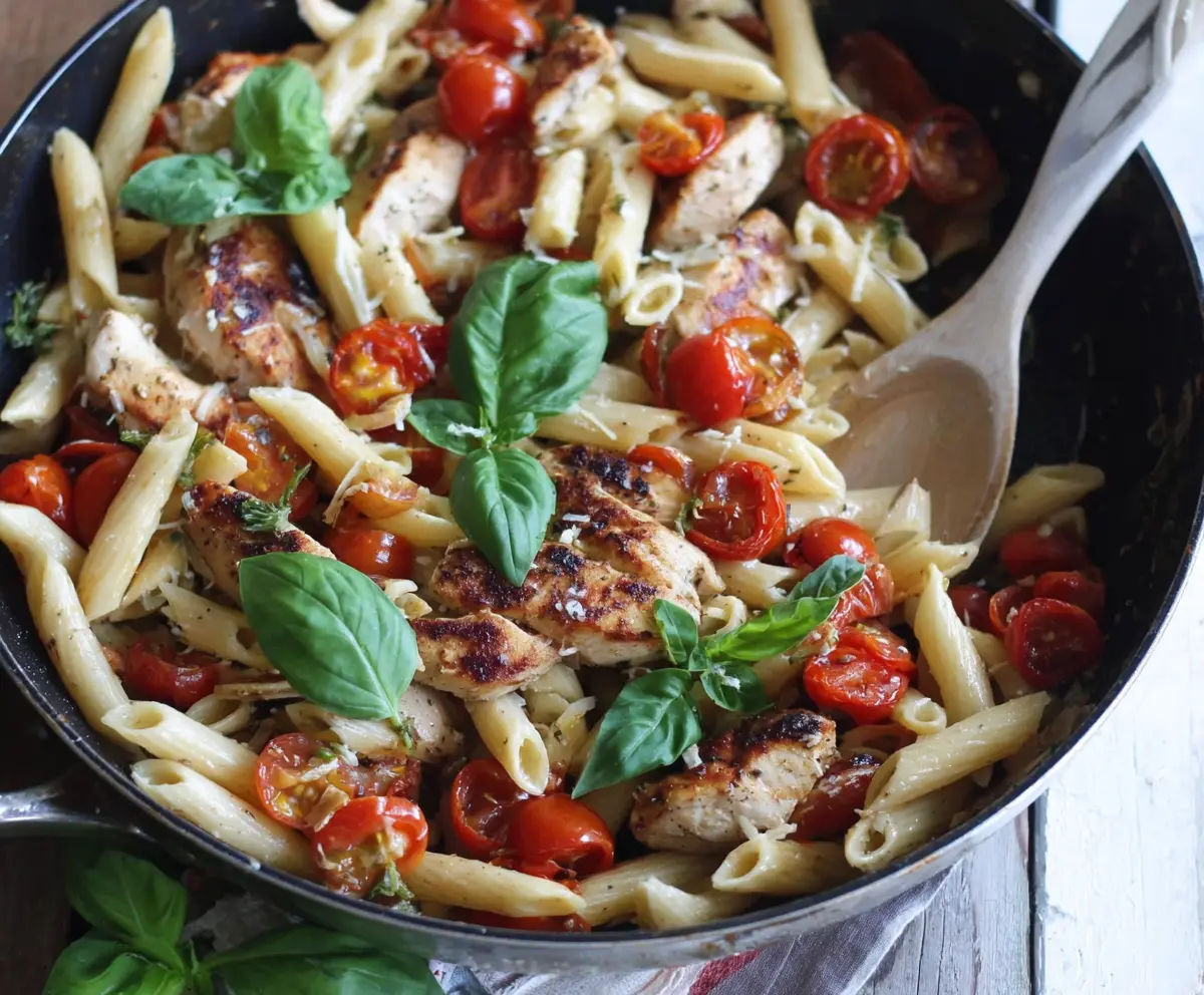 Serve the Balsamic Chicken Pasta warm and feel free to add a fresh basil sprig for garnish. Enjoy this vibrant, savory, and slightly tangy dish with your loved ones!