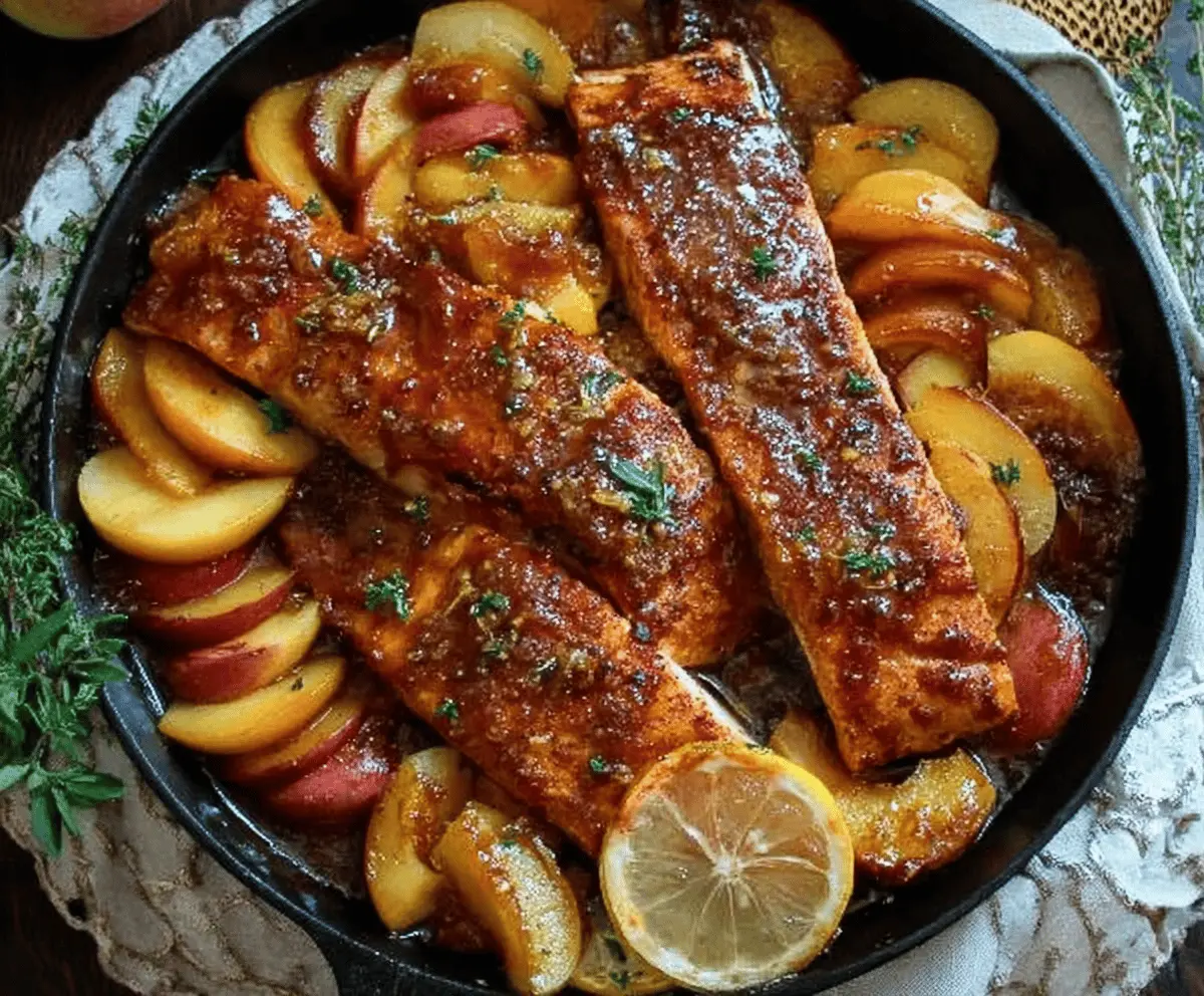 Add in some cozy vibes with the smell of roasting salmon and peaches filling your kitchen! I love serving this with a nice salad on the side—it’s a hit every time! 🌟