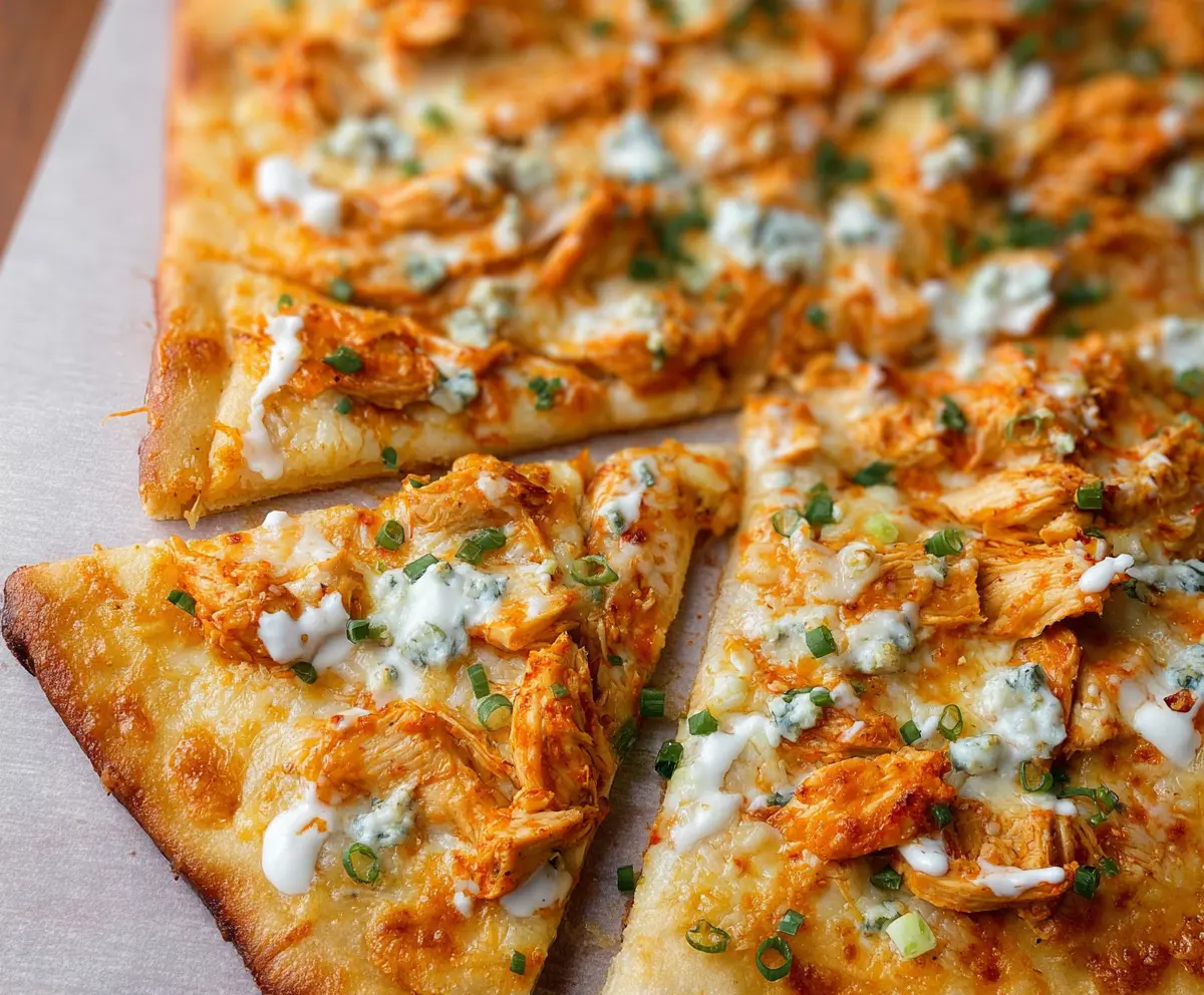 Enjoy your delicious Buffalo Chicken Pizza alongside a cool ranch dip or your favorite beverage!