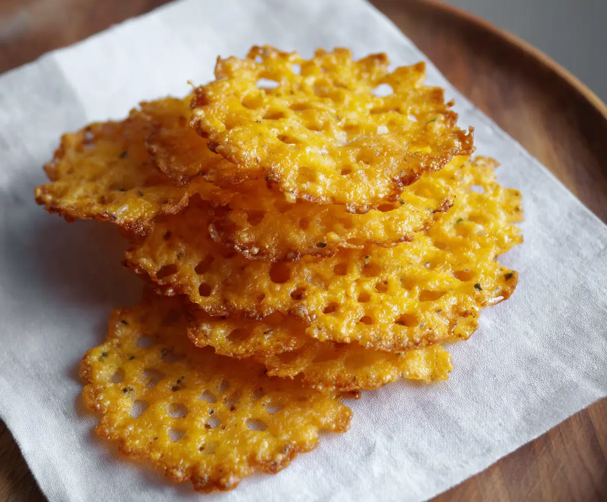 Golden cheddar cheese crisps baked to perfection, crispy and cheesy snack.