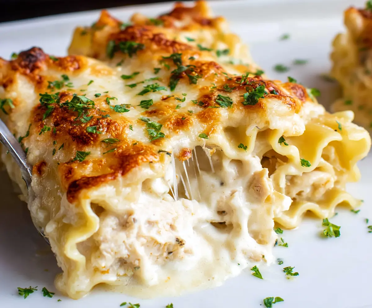 Once baked, remove the dish from the oven and garnish with extra chopped parsley for a fresh touch. Serve warm, and enjoy your creamy and comforting Chicken Alfredo Lasagna Rolls!