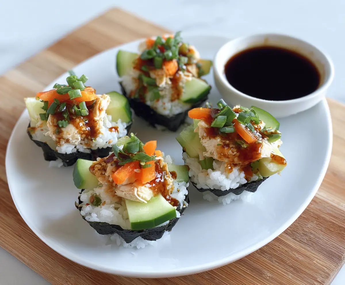 Delicious Chicken Sushi Cups with fresh ingredients and sushi rice, perfect for a quick appetizer or meal.