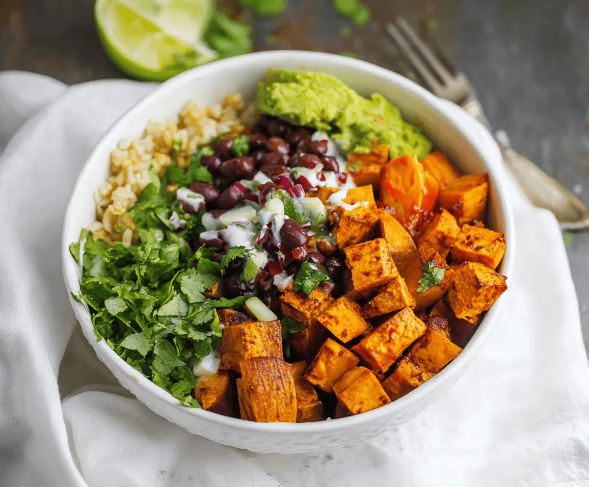 Enjoy this vibrant and flavorful Chipotle Sweet Potato Burrito Bowl as a satisfying meal that’s perfect for lunch or dinner! 🌿
