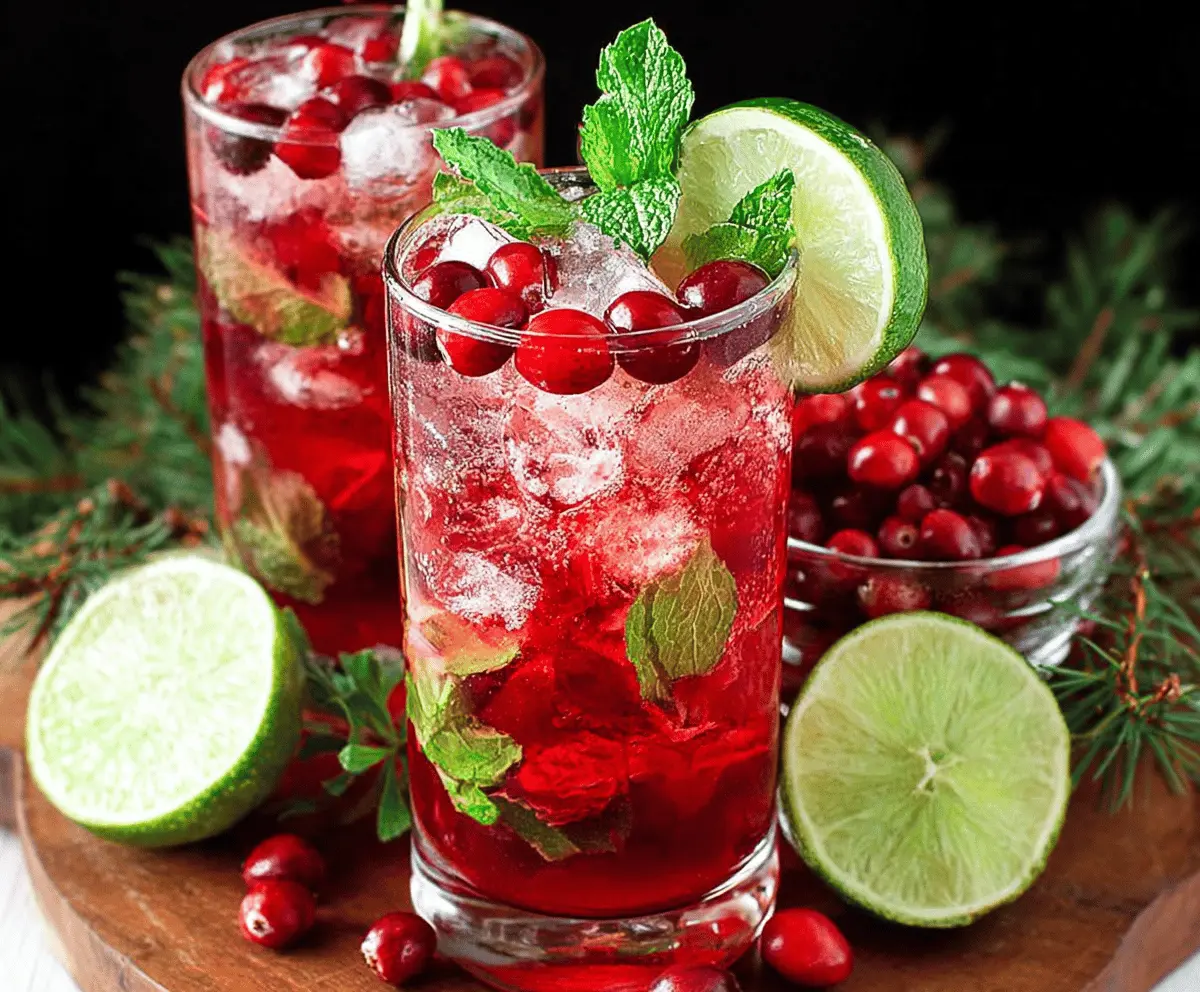 Time for the fun part! Garnish your drink with whole fresh cranberries, a sprig of mint, and a slice of lime on the rim. This not only makes it look beautiful but adds a little extra holiday flair.