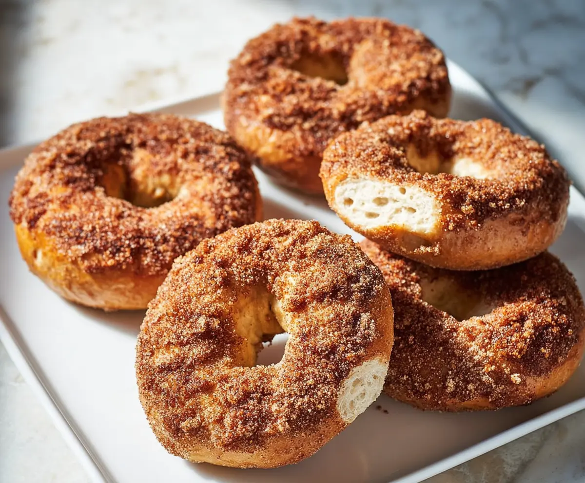Cinnamon Sugar Crunch Bagels are like a warm hug for your taste buds! These bagels are topped with a sweet and crunchy cinnamon-sugar mixture, making them perfect for breakfast or a snack.