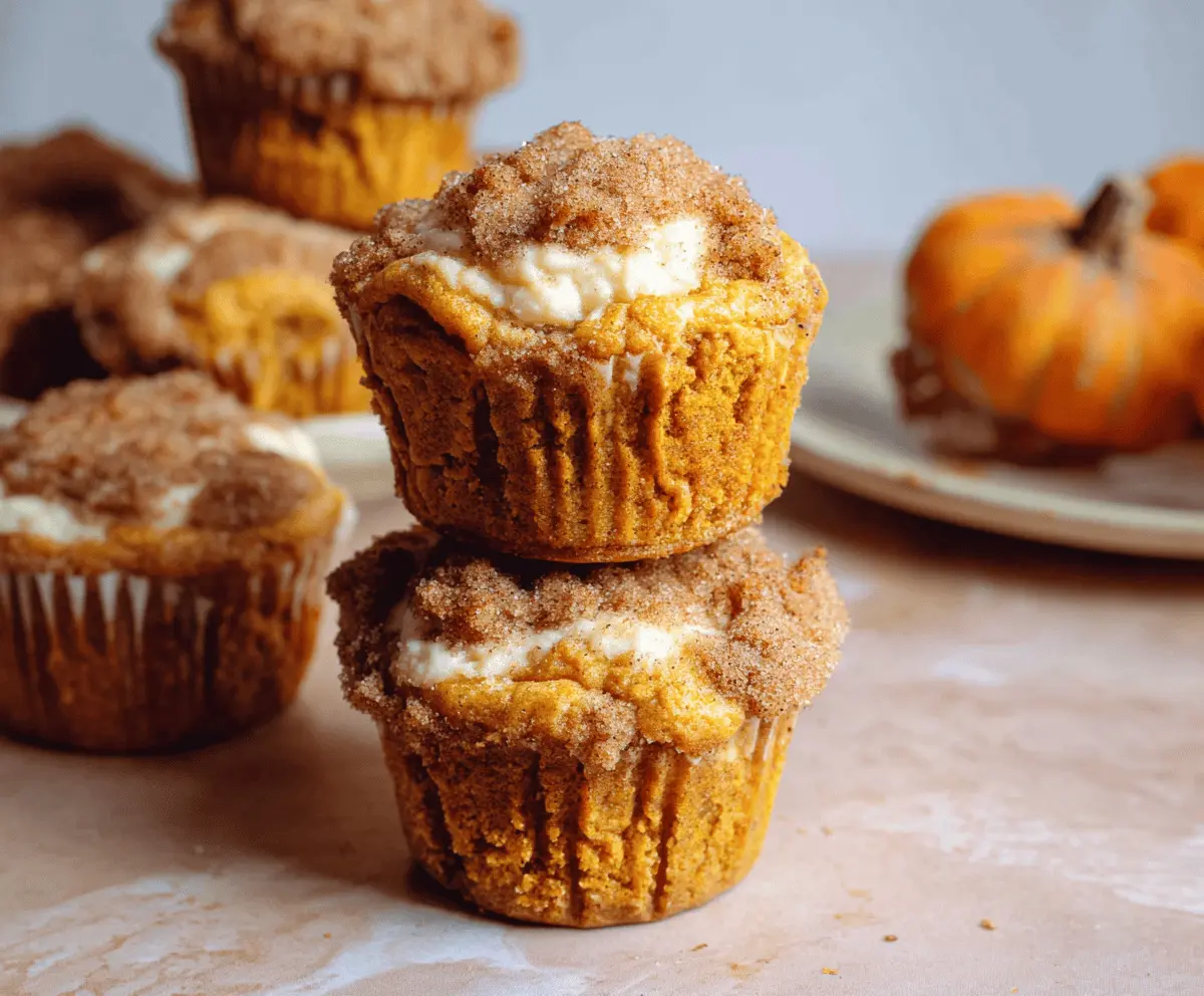 These Cinnamon Sugar Pumpkin Cheesecake Muffins are a sweet treat that combines cozy pumpkin flavors with creamy cheesecake. The sprinkle of cinnamon sugar on top makes each bite irresistible!