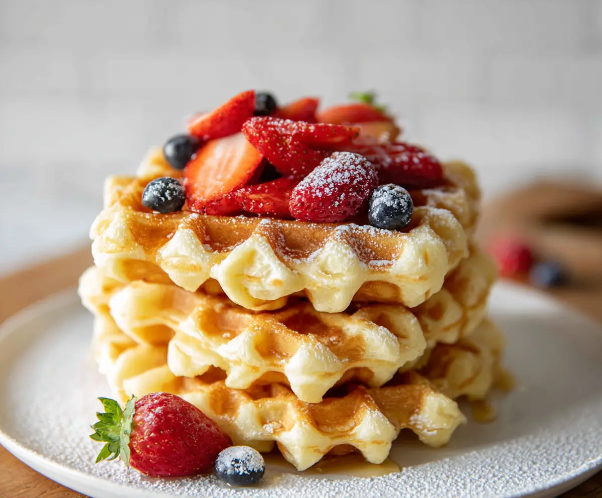 Delicious homemade cottage cheese waffles served with fresh berries and syrup