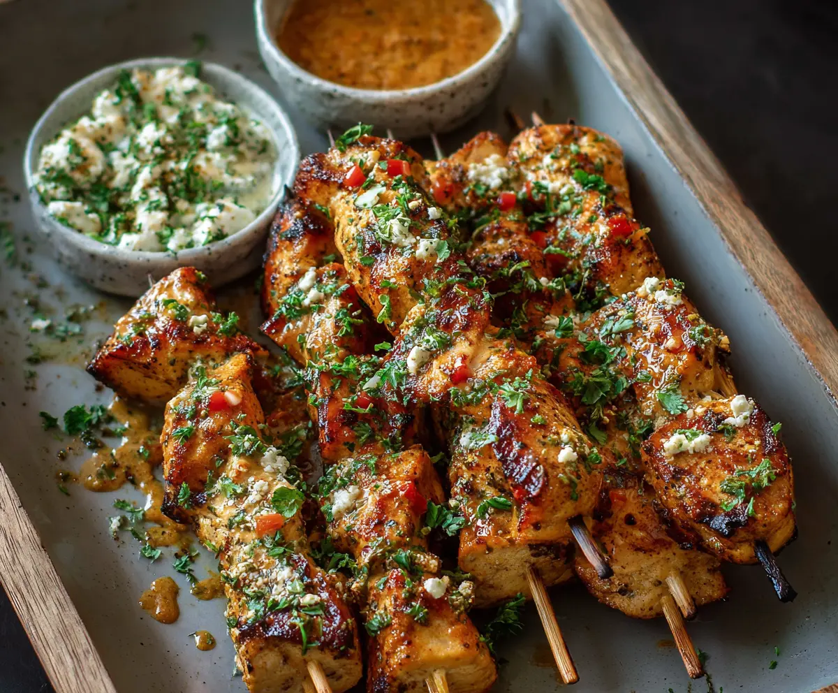 Once grilled, remove the skewers from the grill and place them on a serving platter. Garnish with freshly chopped parsley for a burst of color and freshness. Serve with lemon wedges for a zesty touch!