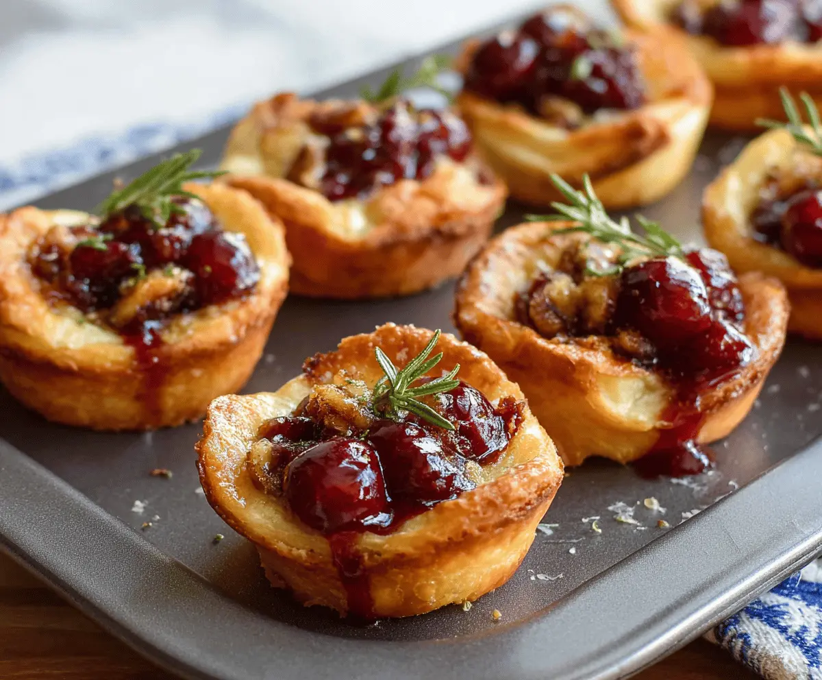 Delicious Cranberry Brie Bites with creamy cheese and tangy cranberries on a festive platter
