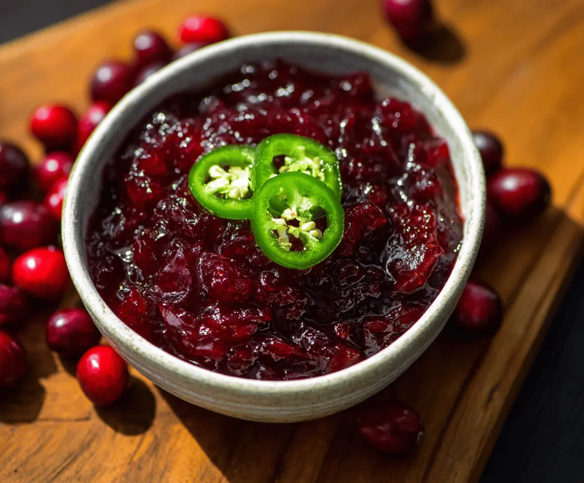 This Cranberry Jalapeño Sauce is a fun twist on the classic cranberry sauce! It’s sweet, zesty, and has a little kick thanks to the jalapeños. Perfect for your holiday table!