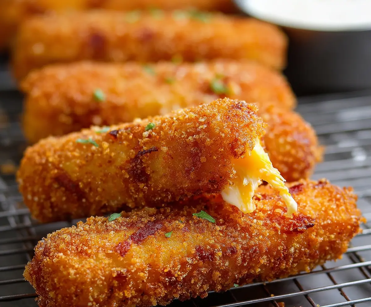 Once golden and crispy, use a slotted spoon to transfer the cooked sticks to a wire rack or paper towels to drain any excess oil. If desired, garnish with fresh parsley or chives for a pop of color. Serve while hot with your favorite dipping sauces, like ranch, sour cream, or spicy ketchup.