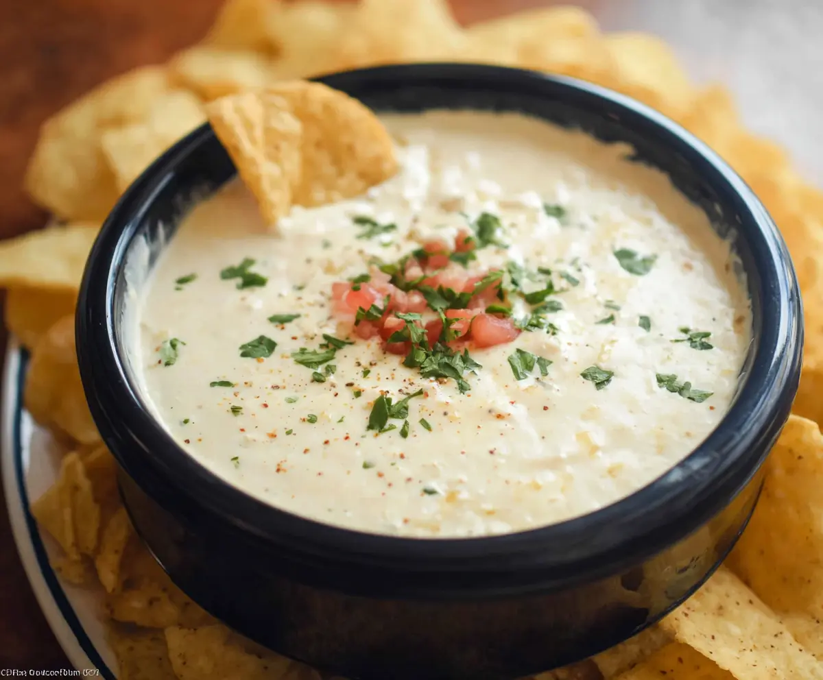 Serve the white cheese dip warm with tortilla chips or crackers. Everyone will love dipping into this creamy goodness!