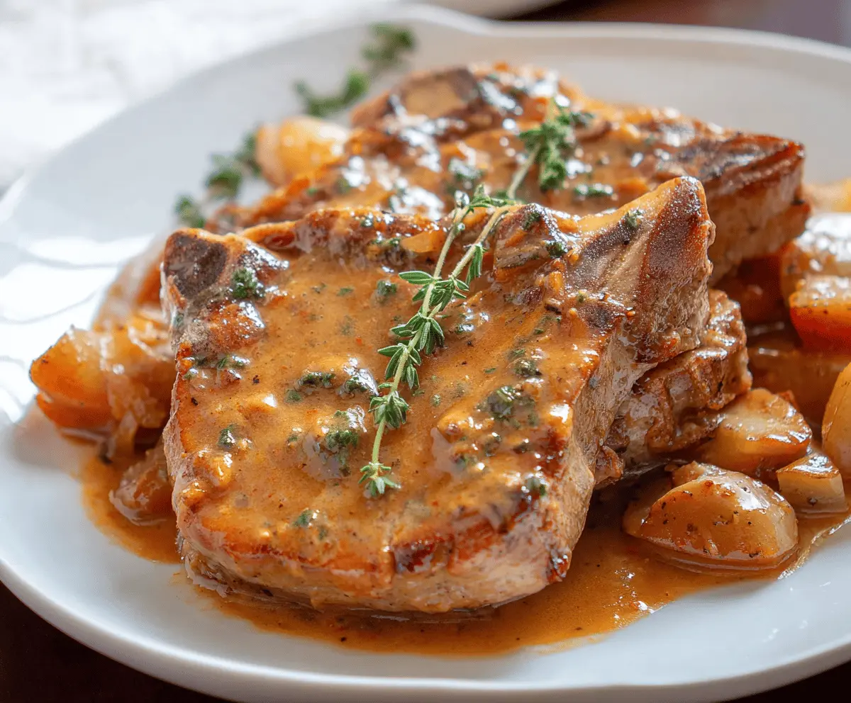 The secret to tender pork chops is in the slow cooking process. Start by searing the chops—this locks in the juices and enhances flavor. Here’s how to do it: