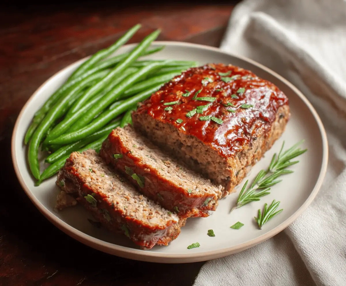 Delicious dairy-free meatloaf served on a plate, perfect for vegan and allergy-friendly diets.