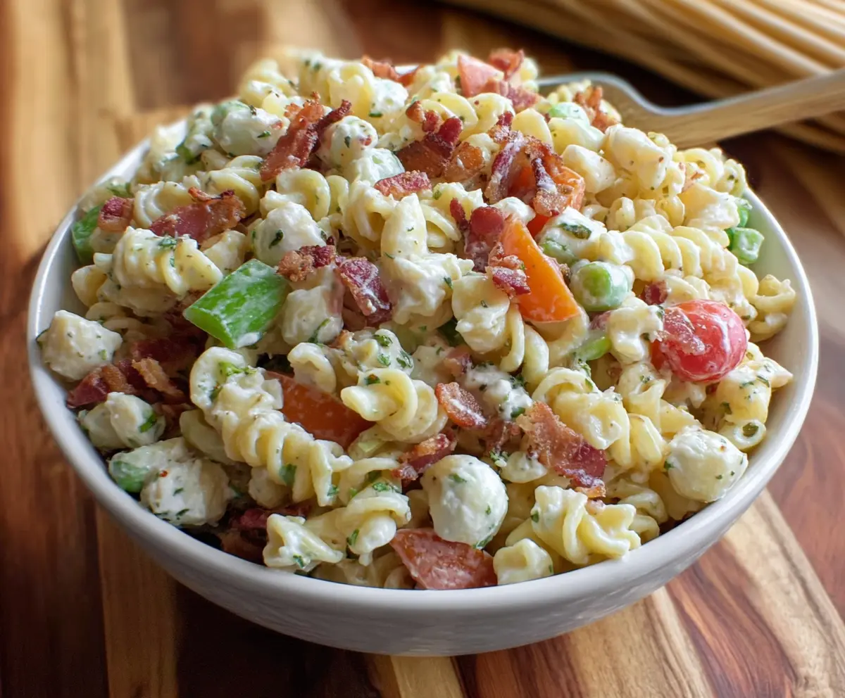 This fresh ranch pasta salad brings together yummy pasta, crispy bacon, and colorful veggies all tossed in a creamy ranch dressing. It’s a tasty dish perfect for any gathering!