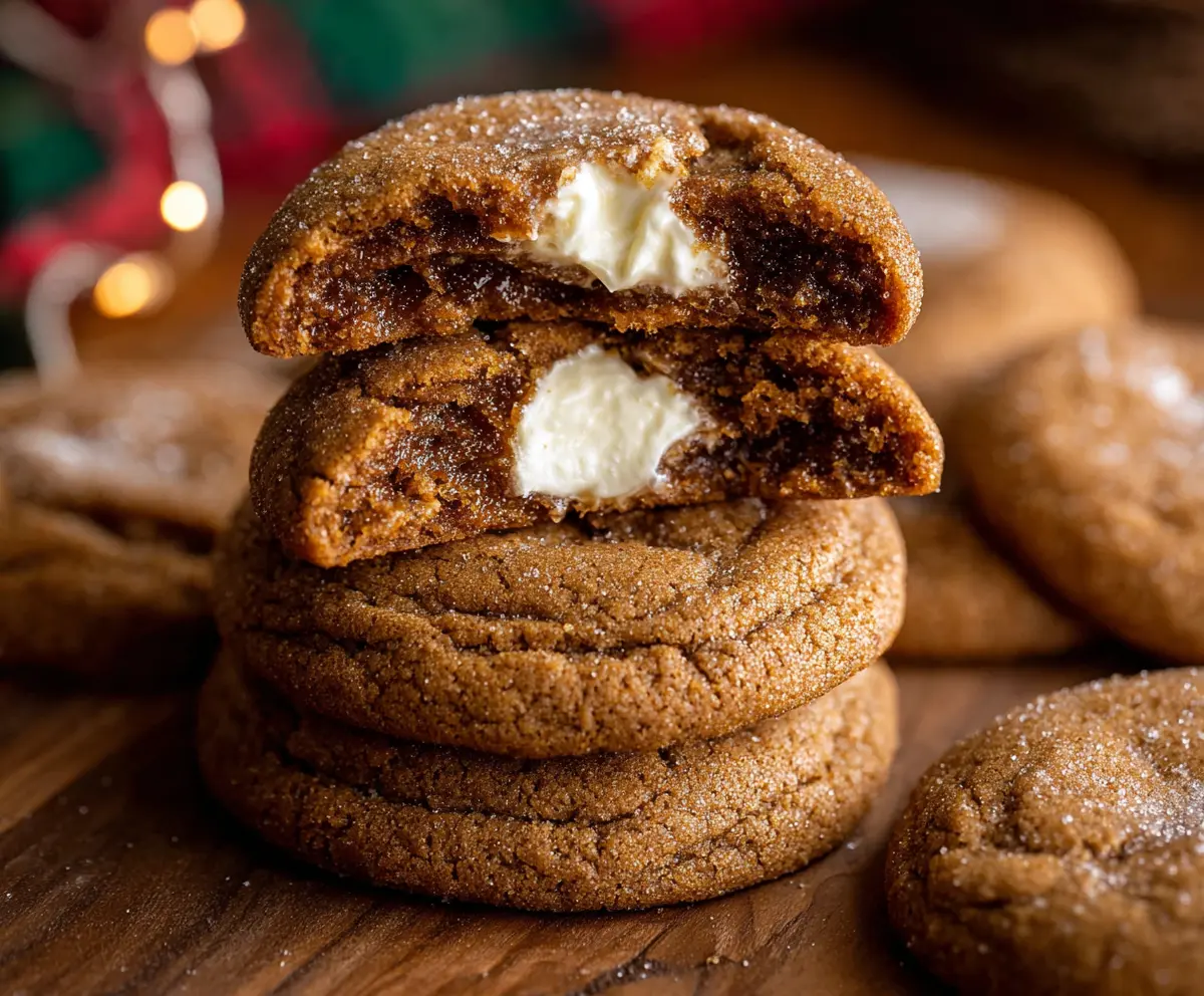Enjoy your soft, chewy, spiced Gingerbread Cheesecake Cookies with their creamy centers and festive icing! They’re perfect for holiday gatherings or as a special treat just for you! 🍪✨