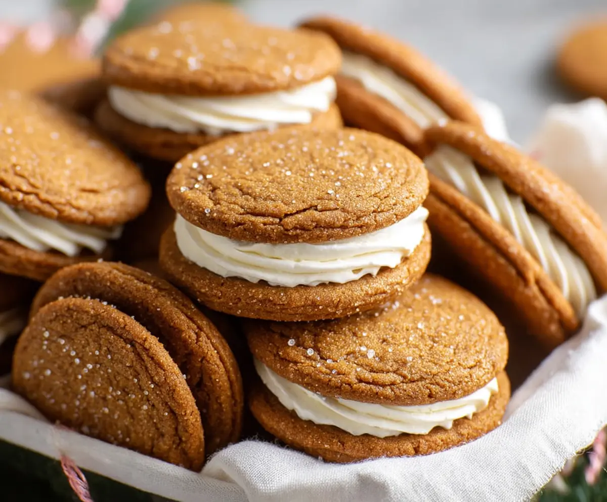 These Gingerbread Sandwich Cookies are festive treats that bring a warm, spicy flavor with a soft, chewy texture. Filled with sweet icing between two gingerbread cookies, they are a holiday delight!