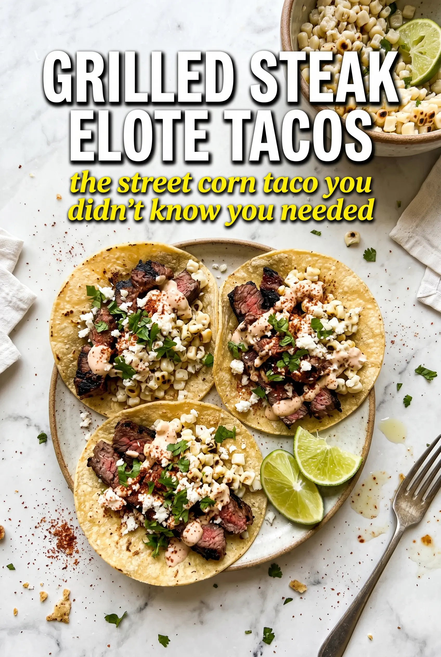 Save these Grilled Steak Elote Tacos for the night you want smoky steak, creamy corn, and crisp tortillas in one bite.