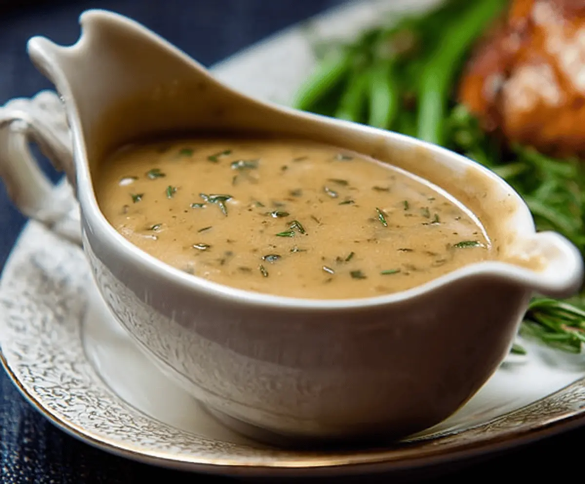 This Herbed Turkey Gravy is a flavorful and smooth addition to your meal. With fresh herbs like thyme and rosemary, it makes your turkey taste even better!