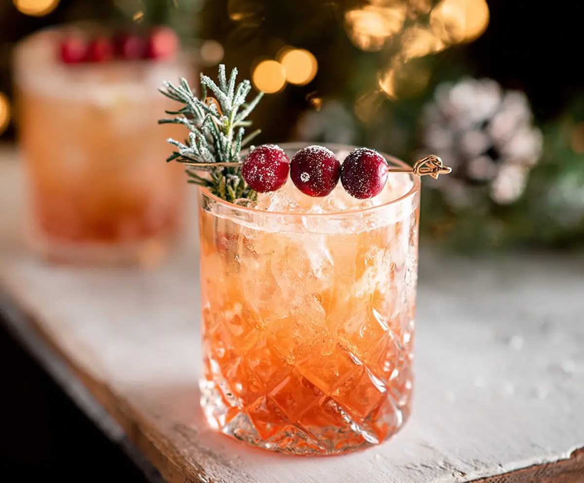 Now for the fun part! Garnish your drink with a skewer loaded with fresh cranberries and a sprig of rosemary. For an extra festive touch, you can lightly dust the top with powdered sugar to mimic fresh snow!