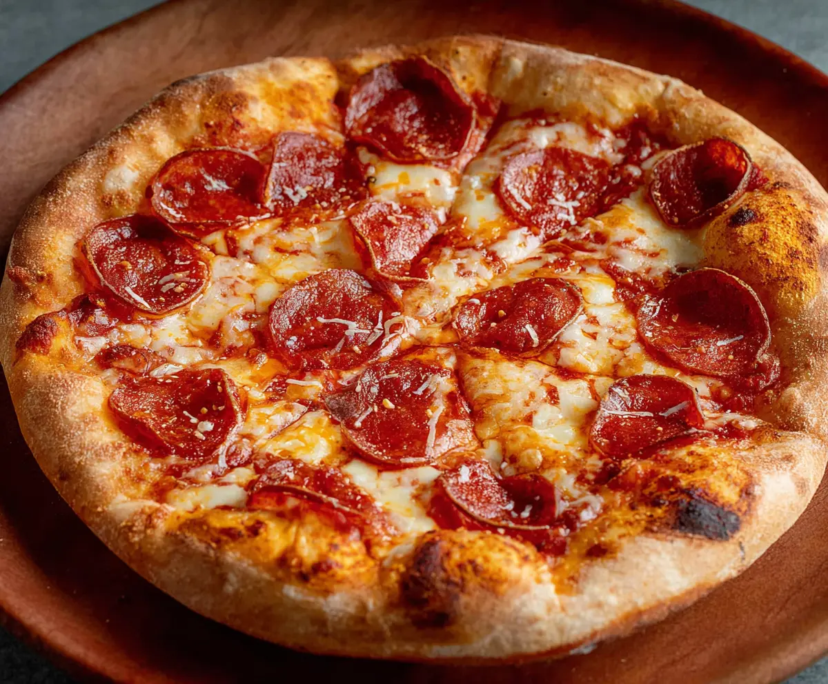 This classic pepperoni pizza is a family favorite! With crispy crust, gooey cheese, and spicy pepperoni slices, it’s hard to resist a hot slice fresh out of the oven.