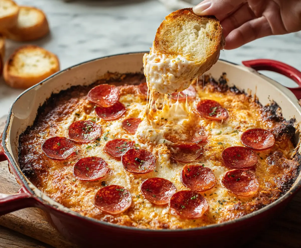 This cheesy pizza dip is a fun twist on your favorite pizza. With rich cream cheese, gooey mozzarella, and pepperoni, it’s perfect for sharing at parties or movie nights!