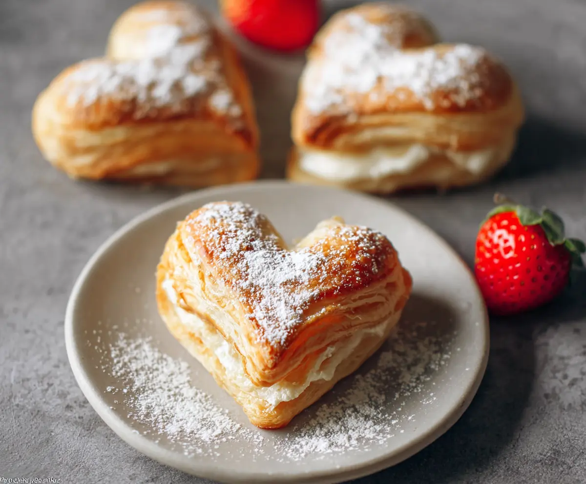 These Puff Pastry Hearts make for a charming dessert for any occasion, whether it’s a holiday, romantic dinner, or just a sweet surprise for yourself! Enjoy! 🍓💖