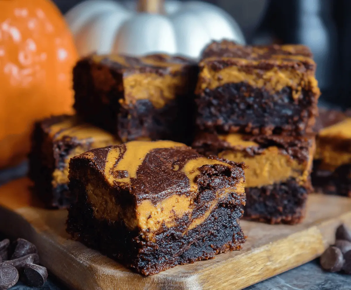 These pumpkin brownies are a tasty treat that combines rich chocolate with the warm flavor of pumpkin. They have a chewy texture that makes them impossible to resist!