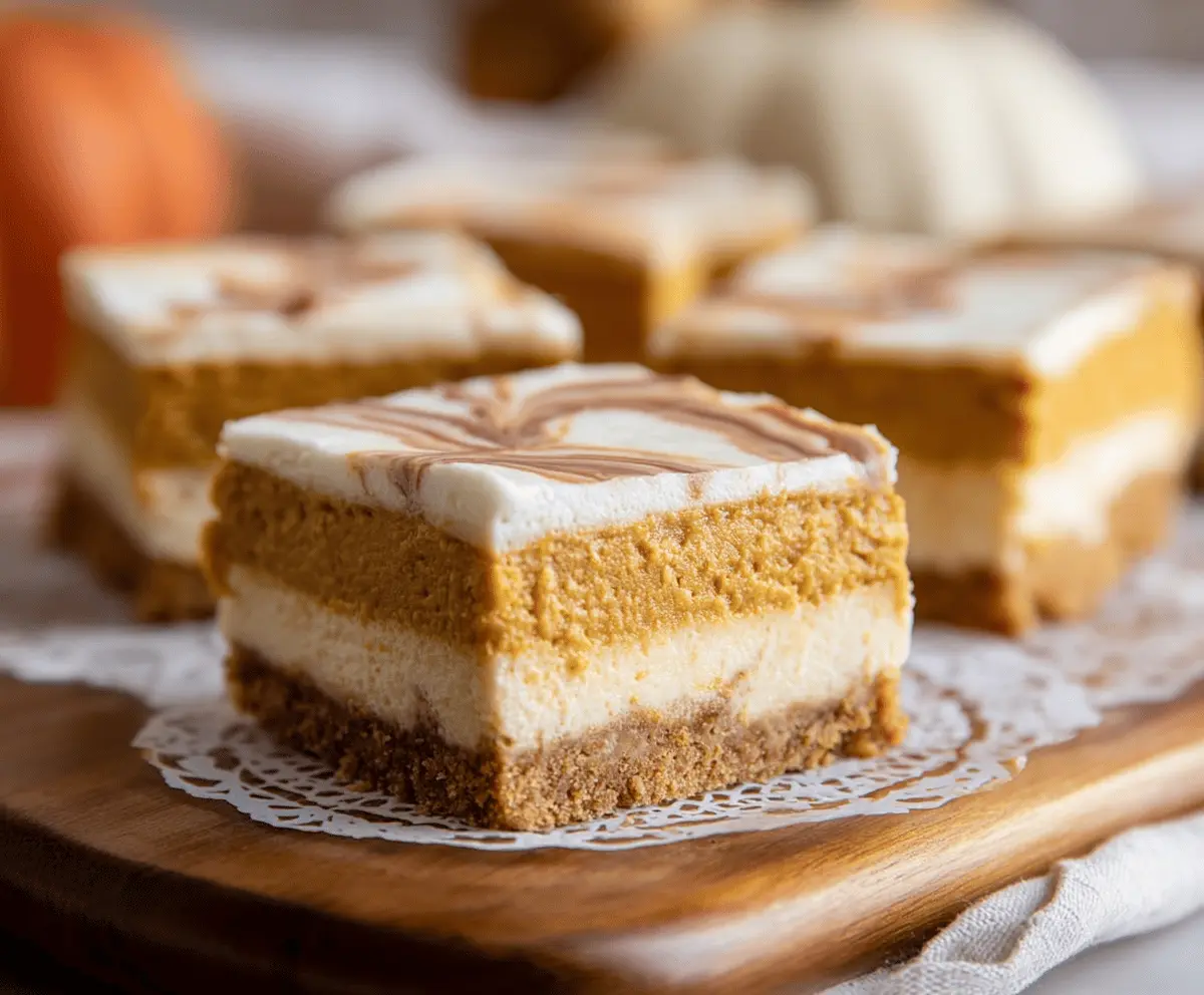 These Pumpkin Pie Cheesecake Bars combine two favorites: creamy cheesecake and spiced pumpkin pie all in one! They are perfect for fall gatherings or just a cozy night in.