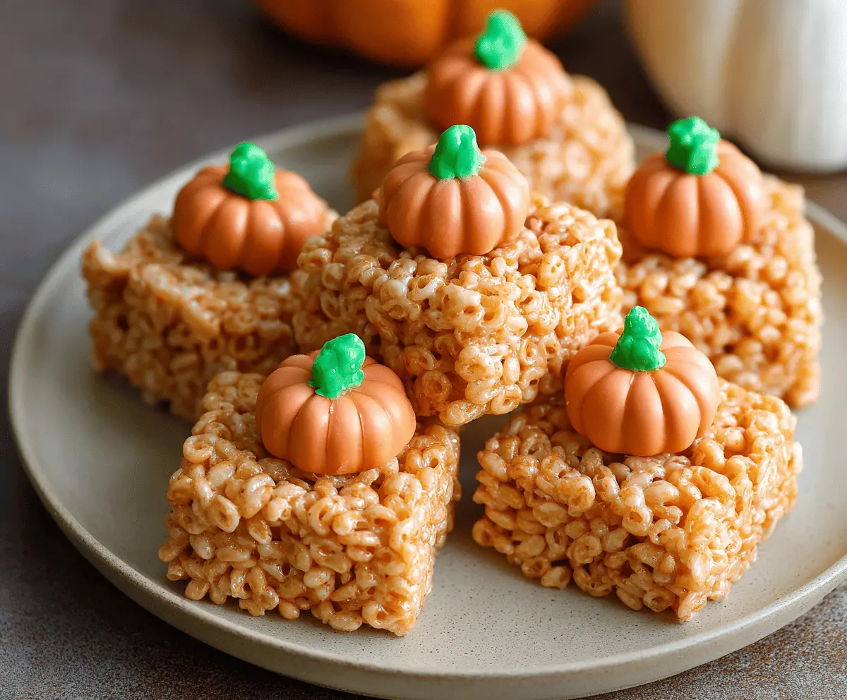 Delicious homemade pumpkin Rice Krispie Treats garnished with autumn spices, perfect for fall desserts and holiday celebrations