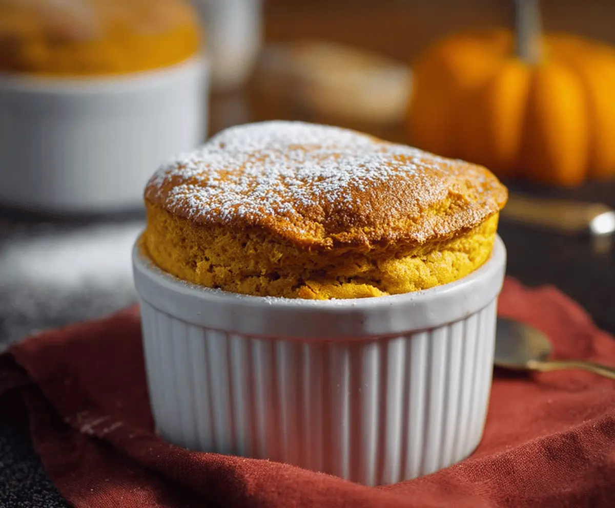 Enjoy your light, airy pumpkin soufflé that captures the cozy flavors of fall!