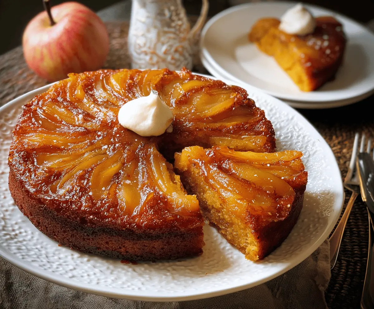 First, preheat your oven to 350°F (175°C). In a small saucepan over medium heat, melt the butter. Once melted, stir in the brown sugar and pumpkin puree until the mixture is smooth and well combined. Don’t forget to add 1 teaspoon of ground cinnamon for that warm spice flavor. Spread this delicious caramel mixture evenly into the bottom of a 9-inch round cake pan. Next, arrange the thinly sliced pear pieces in a circular pattern on top for a beautiful presentation. If you want a bit of crunch, sprinkle chopped pecans or walnuts over the top.