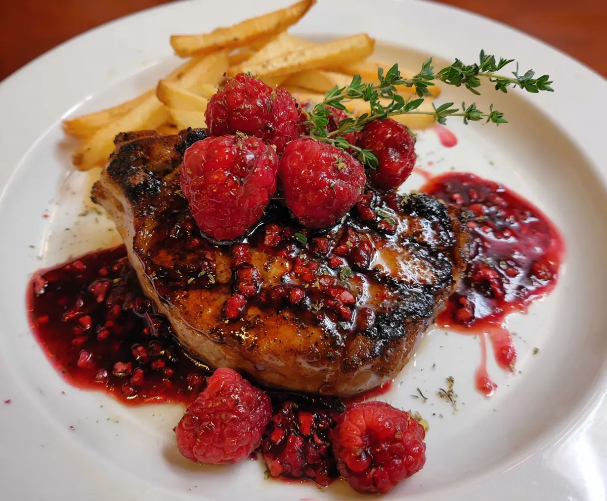 Enjoy this delightful balance of sweet and tangy raspberry glaze paired with tender, juicy pork chops. Happy cooking!