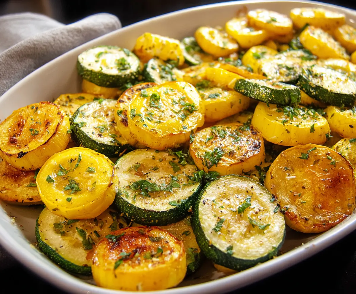 Once they’re done, carefully remove the baking sheet from the oven. Transfer the roasted zucchini and squash to a serving dish. Brighten it up with a sprinkle of fresh parsley and some grated Parmesan cheese, if you’d like.