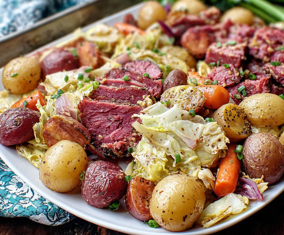 This one-pan meal brings together tender corned beef, vibrant cabbage, and hearty potatoes. It’s all cooked together for a tasty feast that’s super easy to clean up!