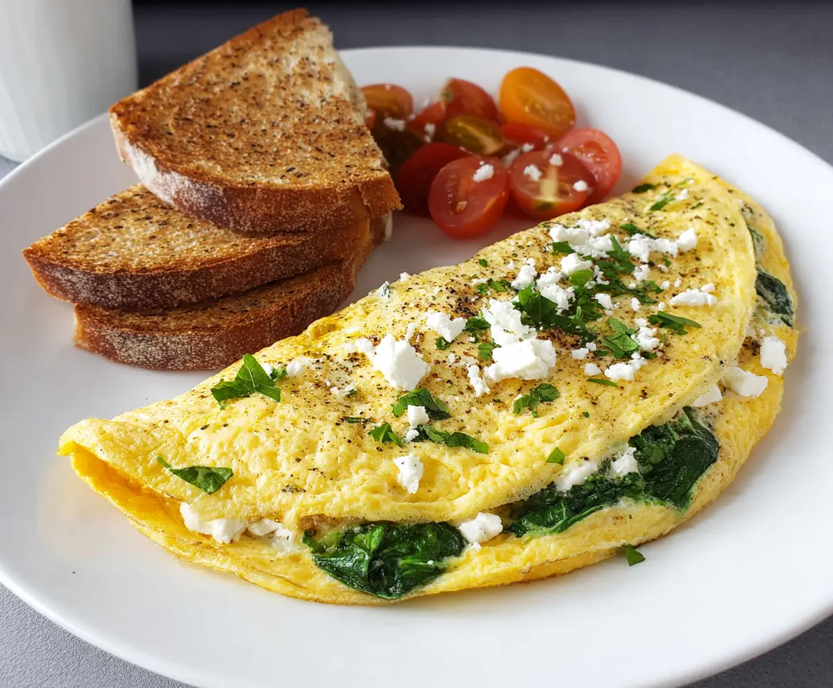 Spinach: Fresh spinach is best for this dish, but you can use frozen spinach if that’s what you have. Just be sure to thaw and squeeze out excess water before adding it to your omelet.