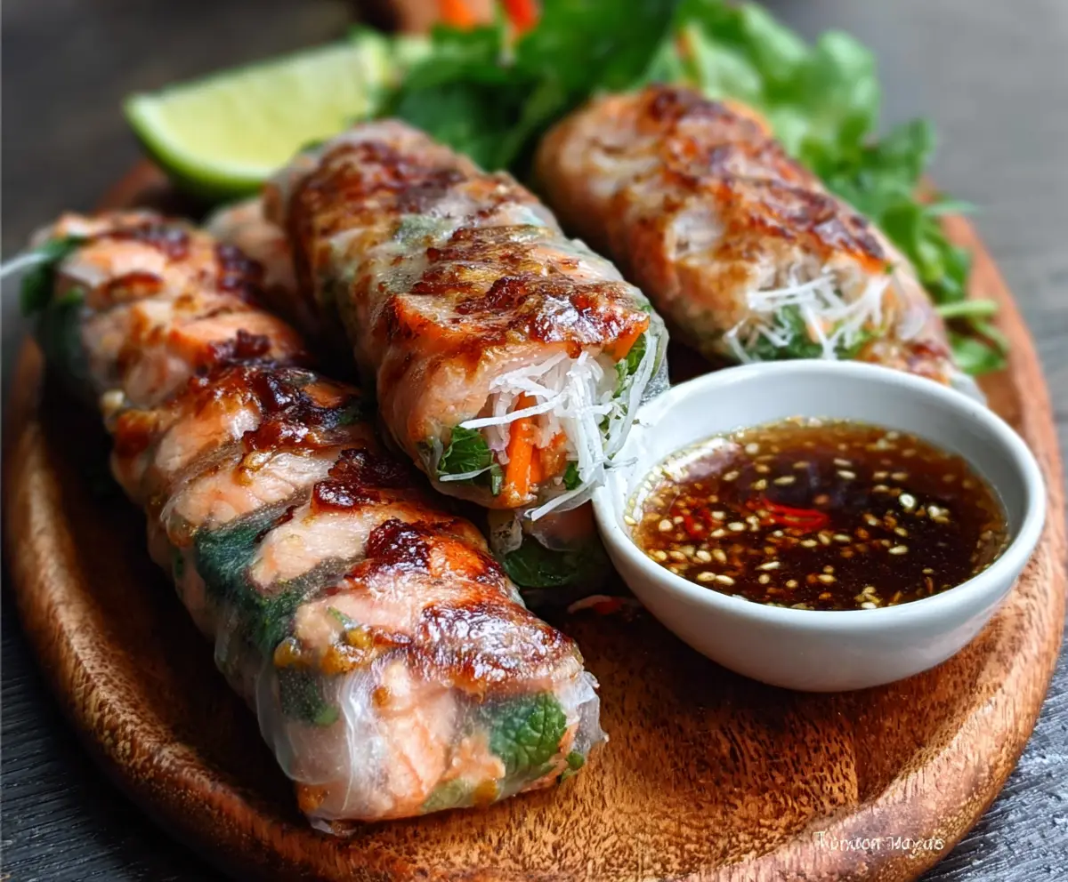 These Vietnamese baked salmon spring rolls are fresh, crunchy, and packed with tasty flavors! Wrap up salmon, veggies, and herbs in rice paper, then bake them for a healthier twist.