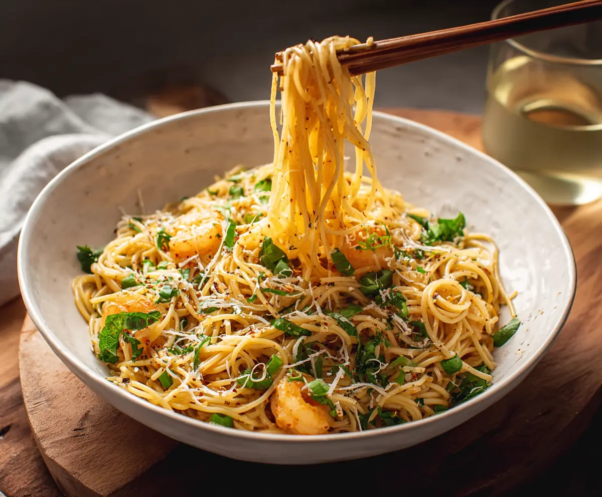This delightful dish takes about 20 minutes to prepare, including cooking the noodles and sautéing the shrimp and garlic. Simple and delicious, it’s perfect for a quick weeknight dinner!